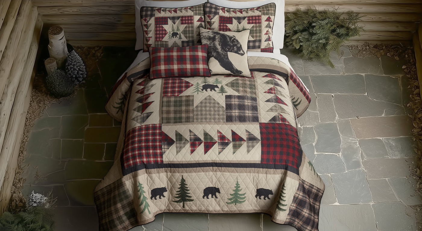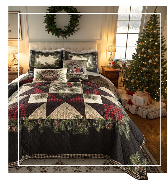 🎄Wrap yourself in rustic comfort this season! Our new Pine Patch quilt is the perfect blend of heirloom style and cozy lodge elegance.🎄