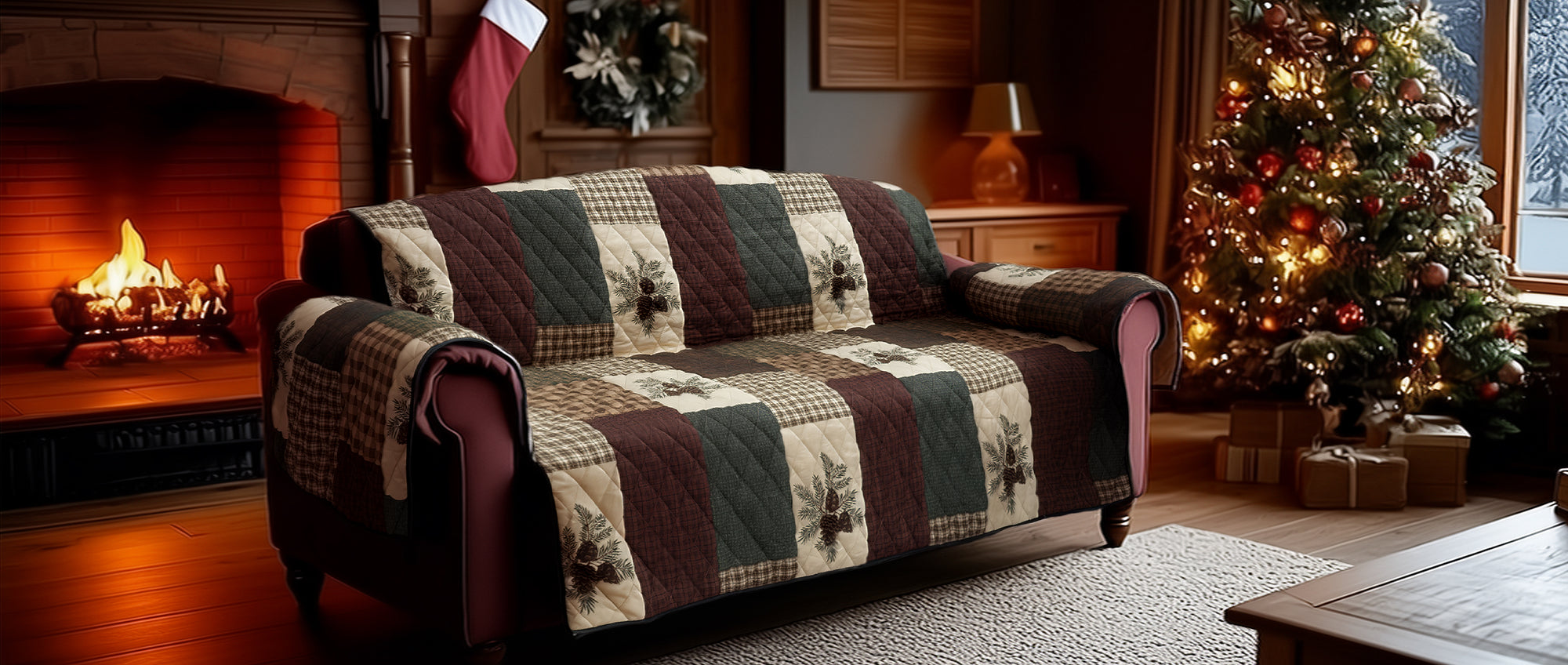 Give your living room a warm, rustic makeover with a selection of lodge-style sofa and chair covers.