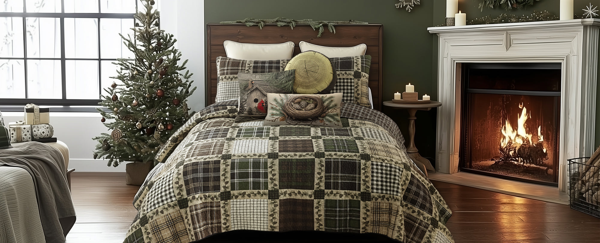 🎄Wrap yourself in rustic comfort this season! Our new Pine Patch quilt is the perfect blend of heirloom style and cozy lodge elegance.🎄