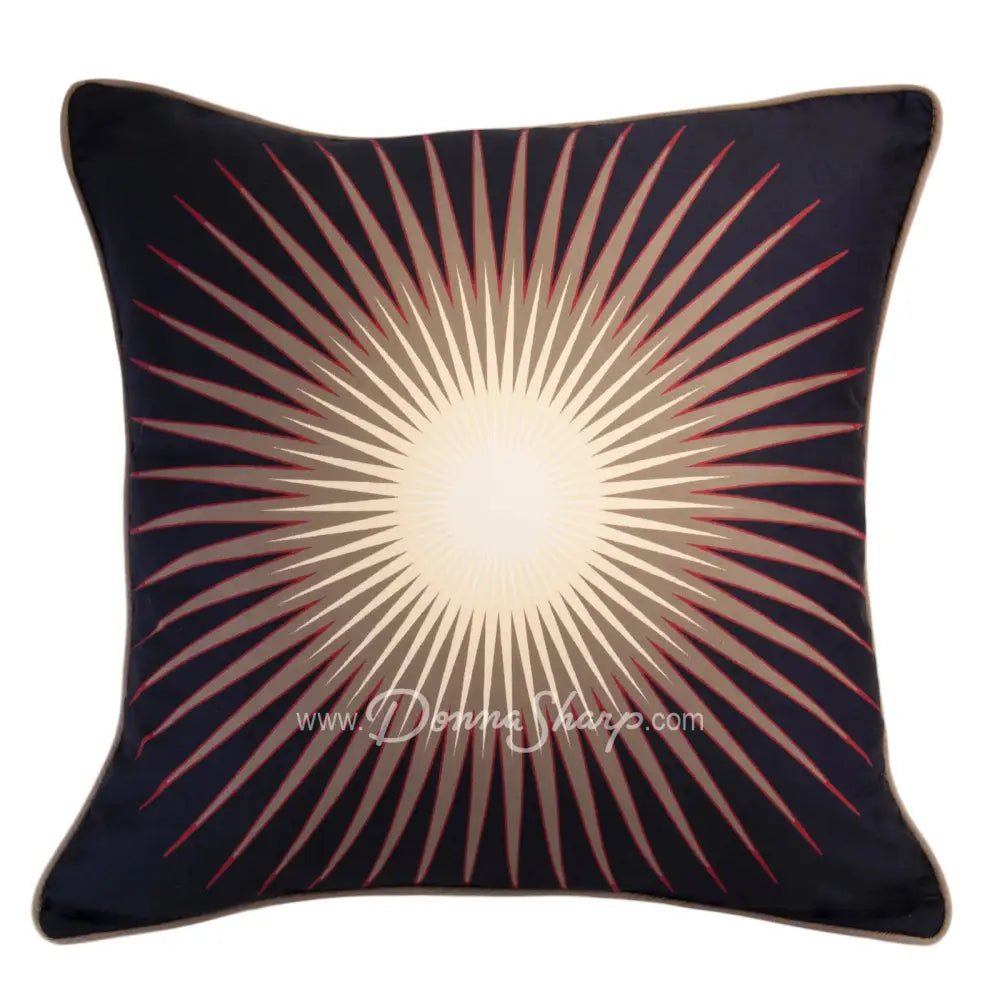 This striking starburst design pillow adds a touch of whimsical style to any room in your home. Adorned with a bright light-inspired starburst print on a dark background, this pillow is a piece of art for layering on your bed, on a couch, or in a chair in any room in your home. Elevate your style with this piece.