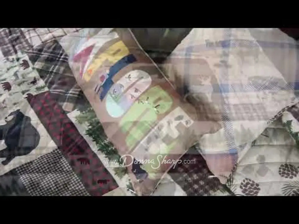 Wilderness Pine is a lightweight 3pc quilted bedding ensemble from Your Lifestyle by Donna Sharp, that displays a variety of deer, moose, bear and pine motifs, arranged in a plaid patchwork. Colors include pine green, chocolate brown, tan, black, ivory, muted red and grey. The lining features a pinecone pattern. The set includes a quilt and 2 shams (Twin has 1 sham). Easy care machine washable fabric. Accessories sold separately.