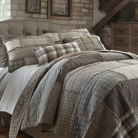 - Pieced Patchwork Quilts – Handcrafted with care, our pieced patchwork quilts feature rich colors and intricate designs that celebrate the art of traditional quilting. These heirloom-quality pieces add a sense of history and warmth to any room. Collections like the Smoky Mountain, Campfire, and Smoky Cobblestone capture the timeless appeal of classic patchwork, perfect for those who appreciate traditional, handcrafted design.