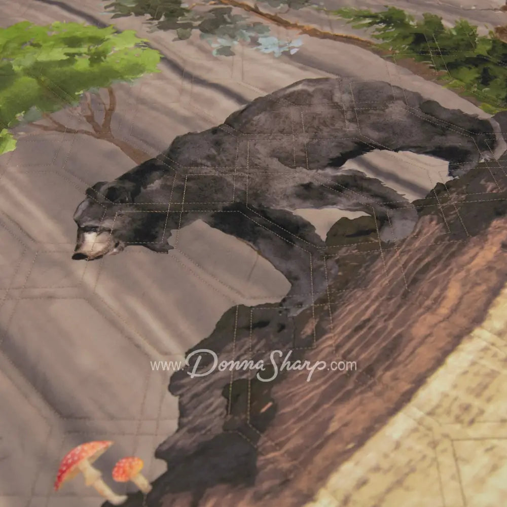 Embrace the wilderness with the Wildwood quilted bedding, where a diverse array of wildlife graces the landscape. Majestic black bears, cunning foxes, graceful deer, and even a playful skunk are artfully incorporated into the design, capturing the spirit of the forest in every stitch. A plaid border adds a touch of classic elegance, perfectly accenting the collection.