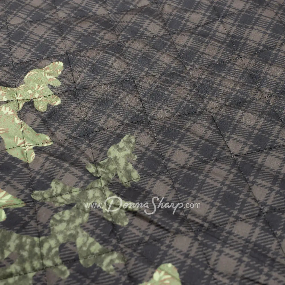 Designed to immerse you in the serene beauty of the great outdoors, this striking quilted bedding ensemble captures the essence of a moonlit mountain cabin nestled amidst a lush forest. A family of majestic bears gracefully wanders through the quilt, adding an extra touch of enchantment to your sleep sanctuary.