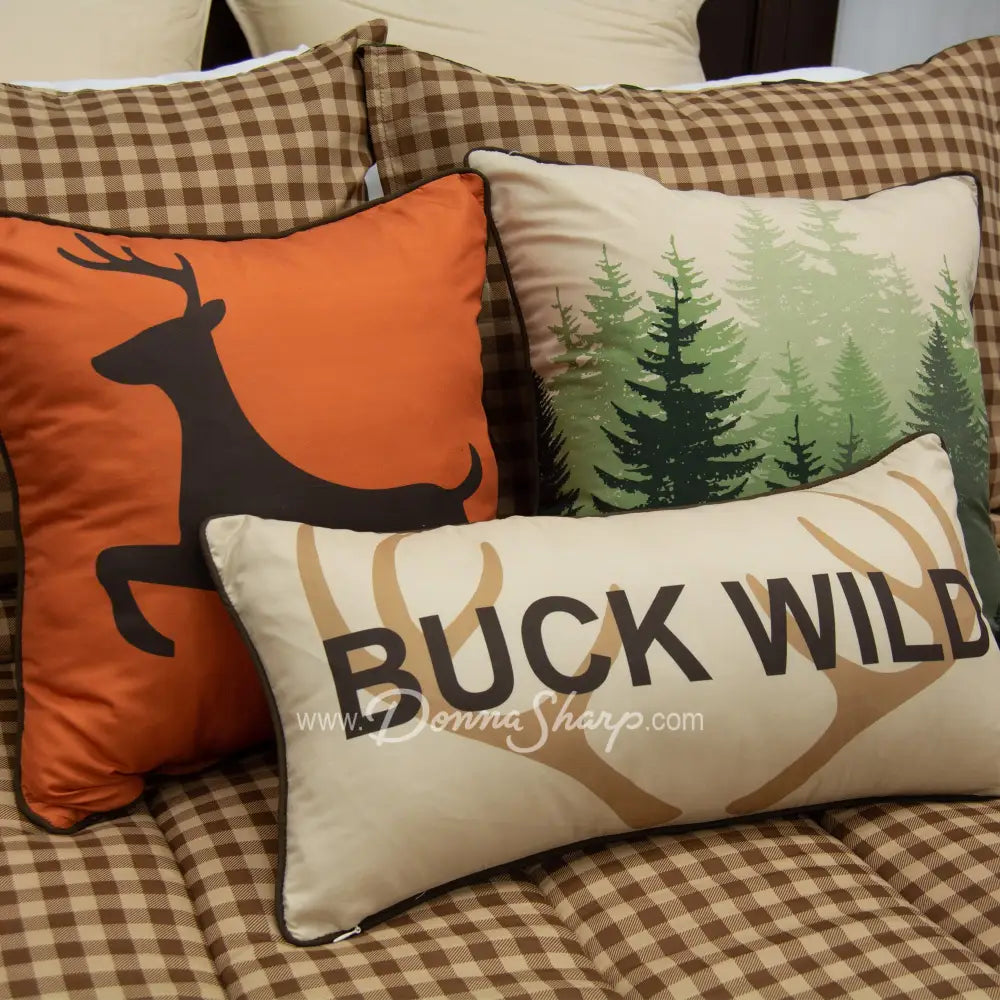 Rest comfortably in the Donna Sharp Green Forest soft, machine stitched lodge-themed comforter set. Each set comes with a coordinating pillow sham that reverses to a stylish gingham pattern to give you more options for your bedroom decor and bang for your buck! Image shown on shams may vary. Top and backing are both 100% soft, brushed polyester. Each piece is filled with 100% poly-fill. Machine washable for easy cleaning.