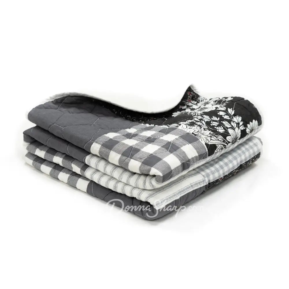 Drenched in a harmonious color palette, the Indiana Farmhouse quilt embraces a range of shades including bold blacks, pristine whites, sophisticated charcoals, gentle greys, and a subtle hint of mauve. Together, these colors provide a touch of nostalgia while retaining a contemporary flair, making this quilt an ideal addition to both traditional and modern settings.