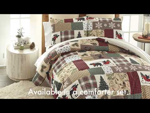 Bring the warmth of a winter cabin to your bedroom with the Dashing 3pc Quilt Set. This charming quilt collection features a blend of plaid, gingham, and ticking patterns, accented with snowflakes, pine trees, reindeer, black bear, moose, acorns, and pinecones – perfect for capturing the rustic essence of a woodland retreat. With a palette nature-inspired colors, this quilt set wraps your space in cozy charm making every night feel like a peaceful escape. Perfect for creating a cozy retreat for the holidays and all winter long!