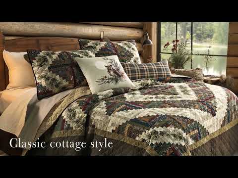 Crafted from ultra-soft microfiber, this quilt set features an array of forest and botanical motifs that beautifully capture the essence of nature. The intricate design is accented with decorative pinecones and pine needle details along the borders, creating a cohesive look that feels both inviting and sophisticated.