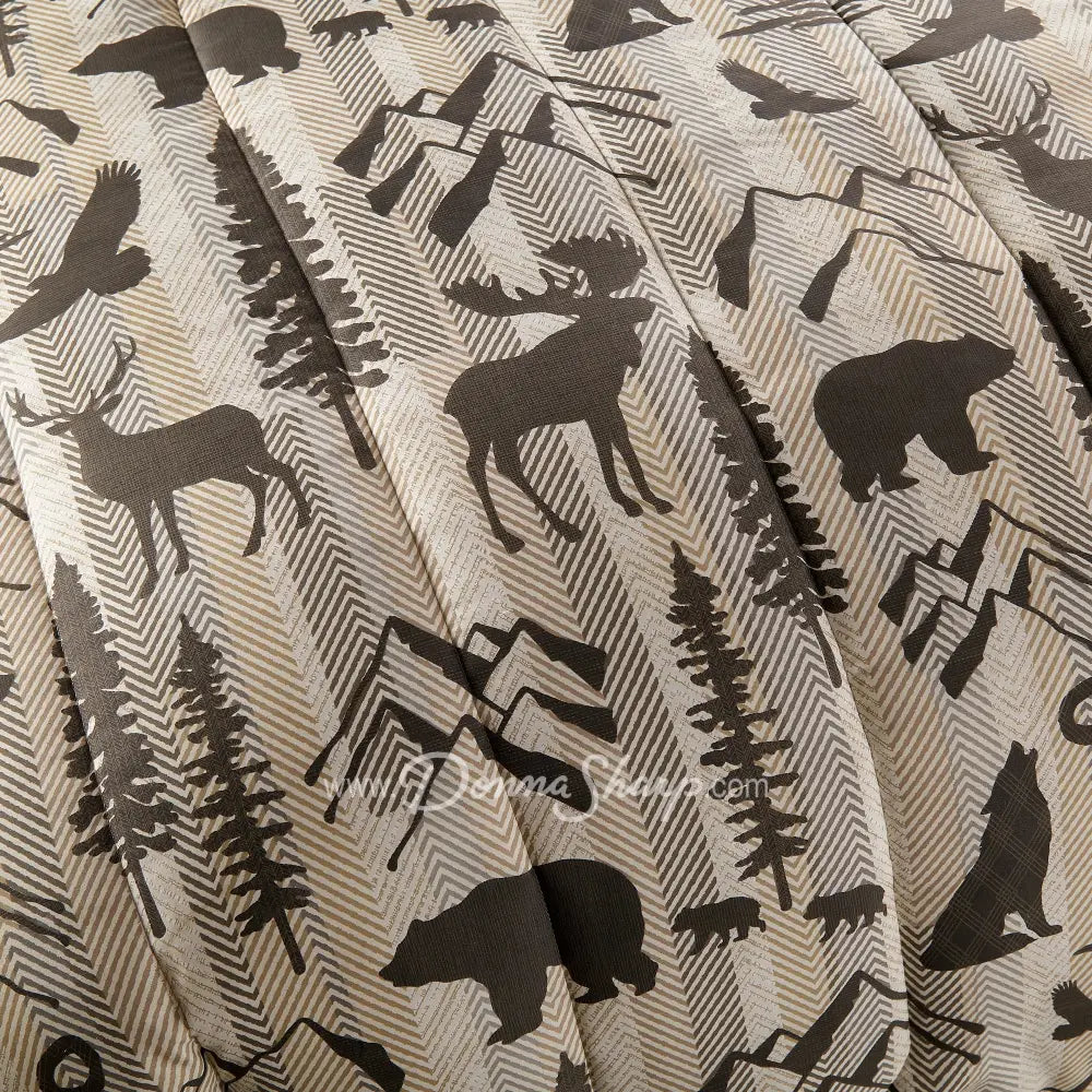 Feel as though you are lying peacefully in the forest or among graceful wildlife with this beautifully illustrated 3-piece reversible comforter set from Your Lifestyle. Change your room décor weekly with either side depending on your mood and interior decor needs. Colors include wheat, ivory and chocolate on one side, and silver / grey tones on the reverse. Easy care fabric. Set includes a comforter and 2 pillowcases.